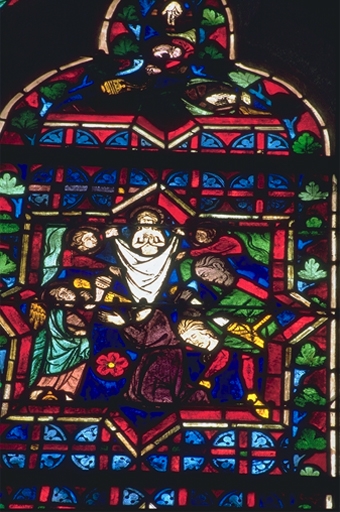 Verrière de la baie 100 (verrière légendaire) : Jugement dernier, Vie du Christ, Histoire d'Abraham, Vie de sainte Catherine, Vie de sainte Marguerite, évocation des évêques de Dol,