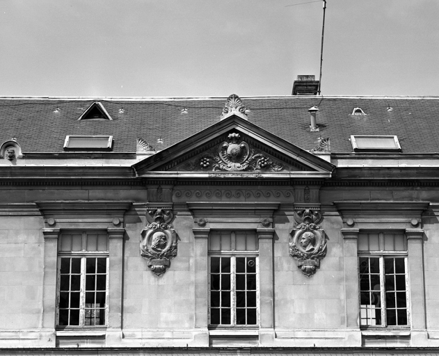 Détail des médaillons sculptés sur la façade sud.Immatriculation