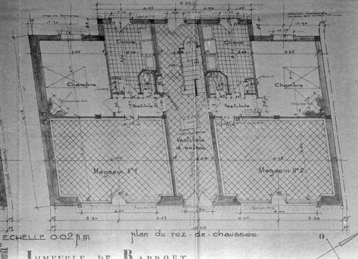 Immeuble, rue de Dinan. Plan du rez-de-chaussée, dessin (A. C. Rennes)Immatriculation