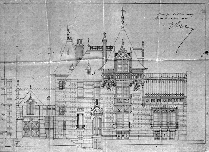 Élévation, dessin, par Laloy, 1897 (A. C. Rennes)Immatriculation