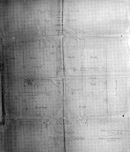 Immeuble pour M. Jamain. Plan du rez-de-chaussée, dessin sur calque, 1896 (A. C. Rennes)Immatriculation