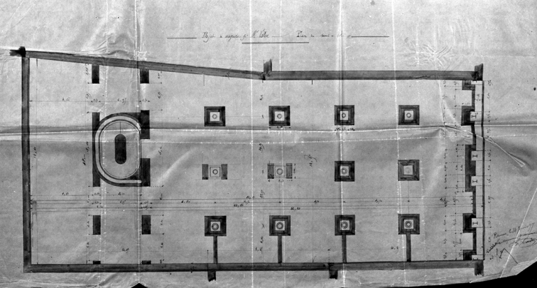 Magasin Valton. Plan du sous-sol, dessin par Guidet,[1897] (A. C. Rennes).Immatriculation