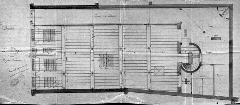 Magasin Valton. Plan du rez-de-chaussée, dessin par Guidet,[1897] (A. C. Rennes).Immatriculation