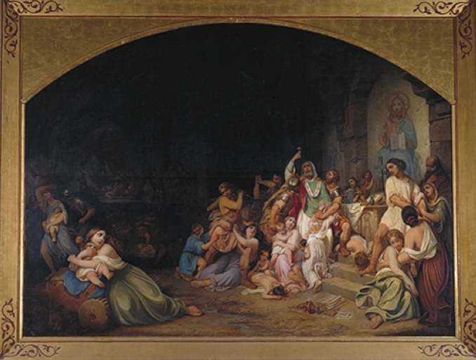 Tableau : Le martyre d'Etienne 1er, pape ; cadre,