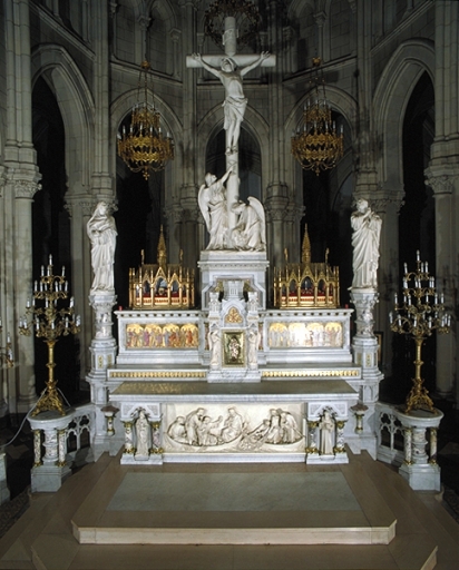 Ensemble du maître-autel : autel, tabernacle, gradin, 2 degrés,
