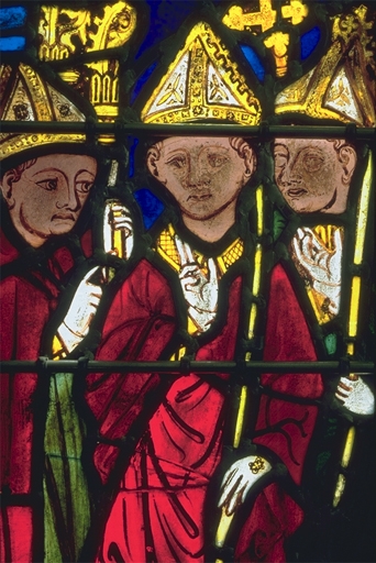 Verrière de la baie 100 (verrière légendaire) : Jugement dernier, Vie du Christ, Histoire d'Abraham, Vie de sainte Catherine, Vie de sainte Marguerite, évocation des évêques de Dol,