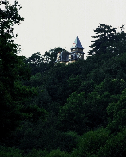 Le château perché sur son promontoire, dominant la vallée de l'Aff : vue de situation sud-estImmatriculation