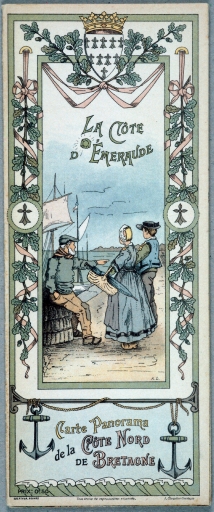 Affiche publicitaire : la Côte d'Emeraude, Carte Panorama de la Côte Nord de Bretagne, Impr. Oberthür, vers 1925.Immatriculation