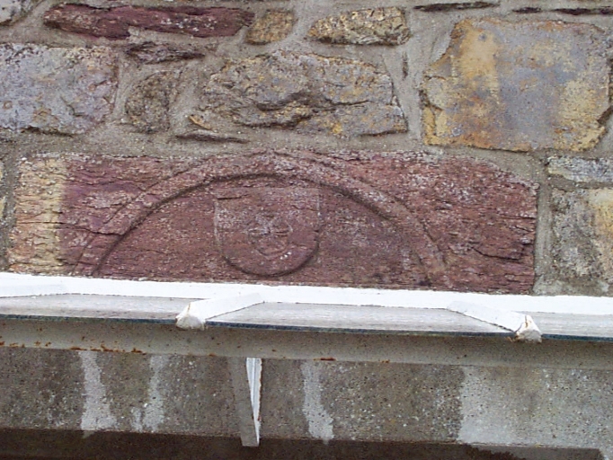 Blosseray(le), pierre de remploi portant un blason marqué d'un motif en étoile tracé au compas, détailImmatriculation