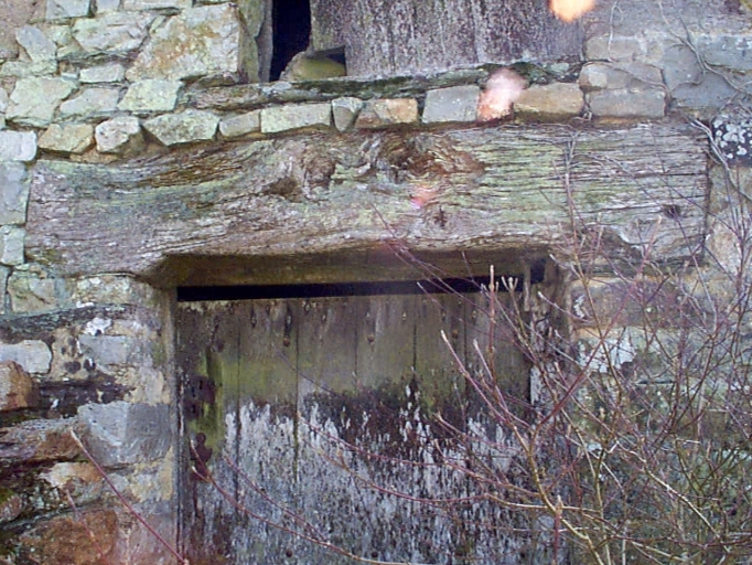 Le palâtre en bois de la porte, protégé d'un larmier de schiste : détailImmatriculation