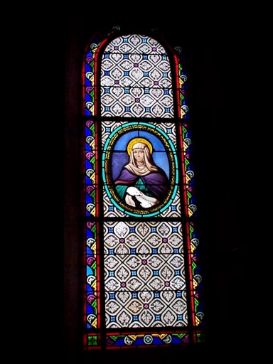 Ensemble des trois verrières du choeur (baies 0, 1, 2) : Immaculée Conception, sainte Anne, saint Joseph,