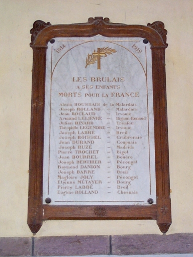 Plaque commémorative : Les Brûlais à ses enfants morts pour la France,