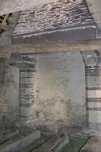 Salle haute, la cheminée en grès et schiste pourpré :vue générale sud-ouestImmatriculation