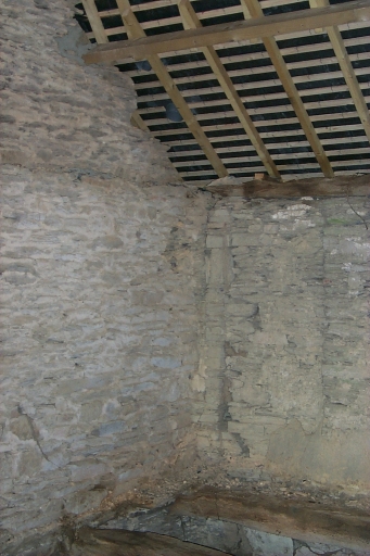Salle haute, traces de remaniements dans l'angle nord-ouest (accès à une colonne de latrines?) : vue partielle sud-estImmatriculation