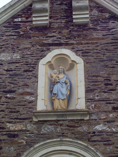 Façade ouest, niche avec la statue de Notre-Dame portant la date 1883 : vue partielleImmatriculation