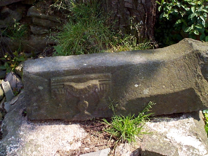 La Lande Bonneau, linteau du 16e siècle, délardé en accolade et sculpté d'un calice, provenant d'un logis détruit de QuaranquerImmatriculation