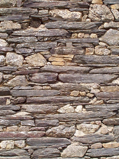 Mur du pignon appareillé en moellons de grès et schiste : détailImmatriculation