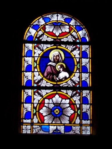 Verrières (2) baies 1, 2 (verrière décorative ; verrière figurée) : sainte Anne ; saint Joachim, Ropenard (Maure-de-Bretagne fusionnée en Val d'Anast en 2017),