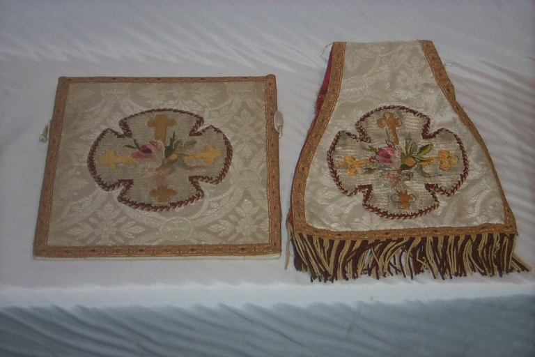 Ornement blanc 11 : manipule, bourse de corporal (Maure-de-Bretagne fusionnée en Val d'Anast en 2017),