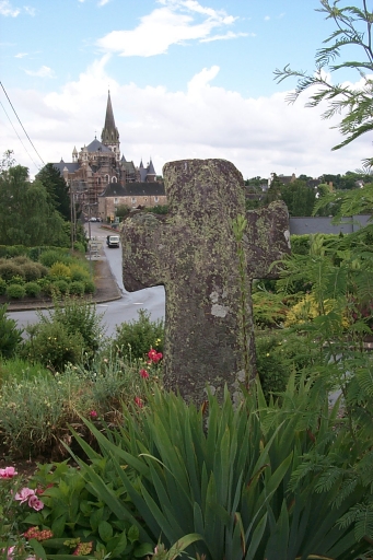 La croix vue du nord avec,en toile de fond, le bourg de Maure-de-BretagneImmatriculation