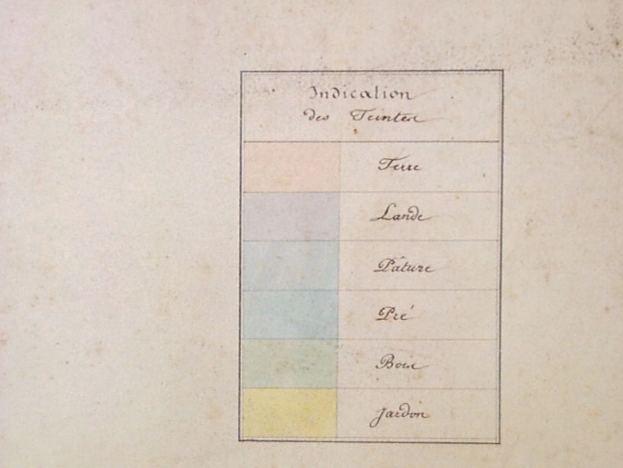 Tableau explicatif des lavis de couleurs du cadastre napoléonienImmatriculation