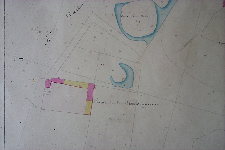 La Châtaigneraie, l'ancien manoir, déjà partiellement ruiné, sur le cadastre de 1836Immatriculation