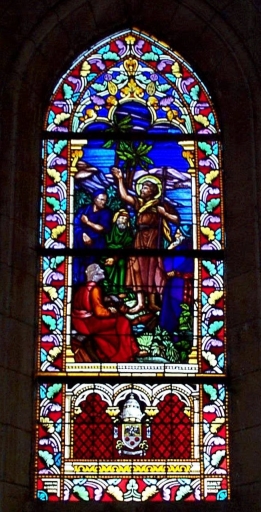 Verrière à personnages de la baie 9 : saint Jean-Baptiste prêche au bord du Jourdain,