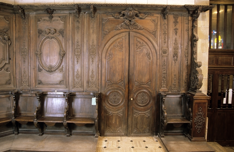 Lambris de hauteur, 34 stalles (décor de choeur), église paroissiale Saint-Pierre, Saint-Paul (Guidel),