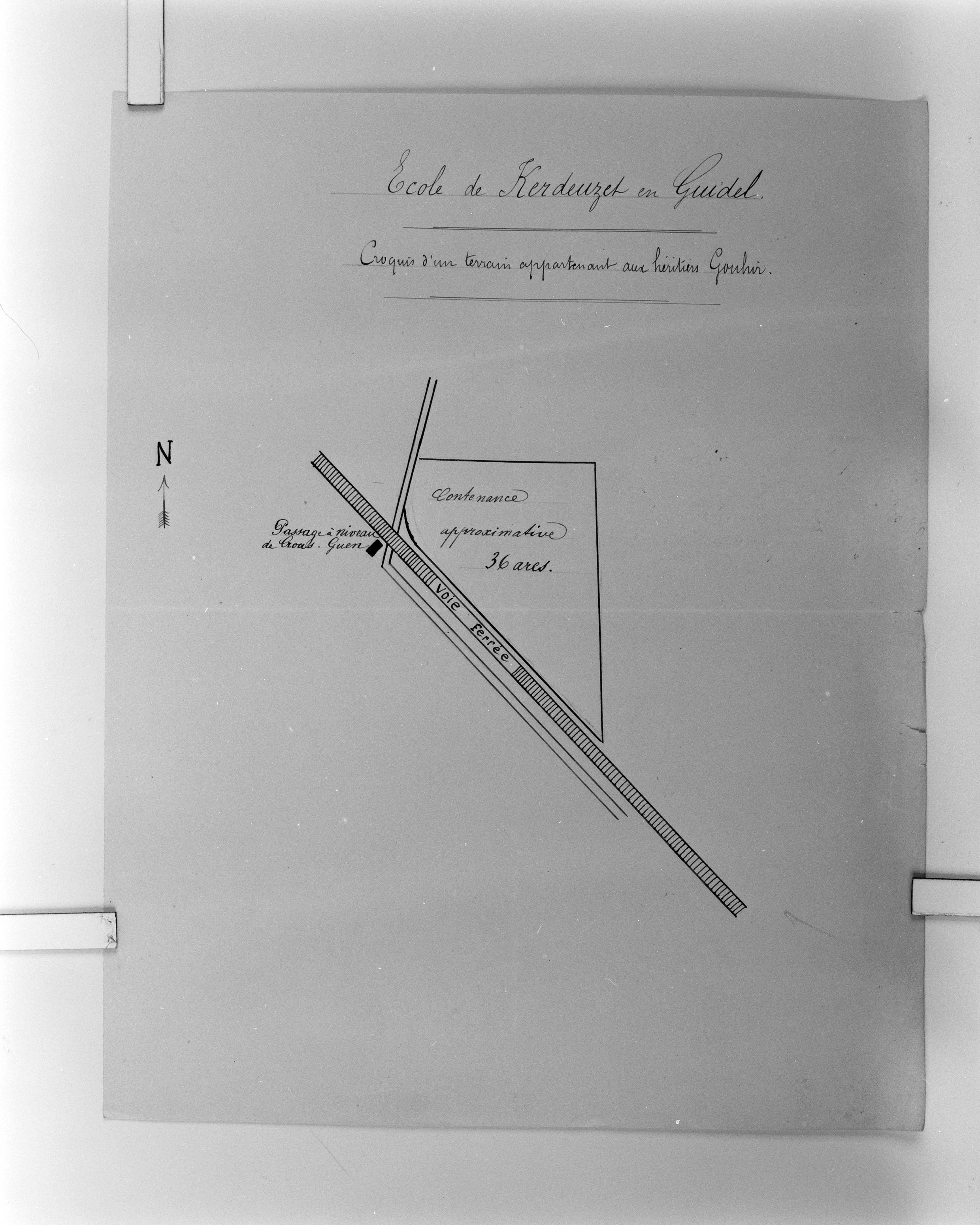 Ecole de Kerdeuzet en Guidel, croquis d'un terrain appartenant aux héritiers Gouhir. Cadastre ancien 1818.Immatriculation