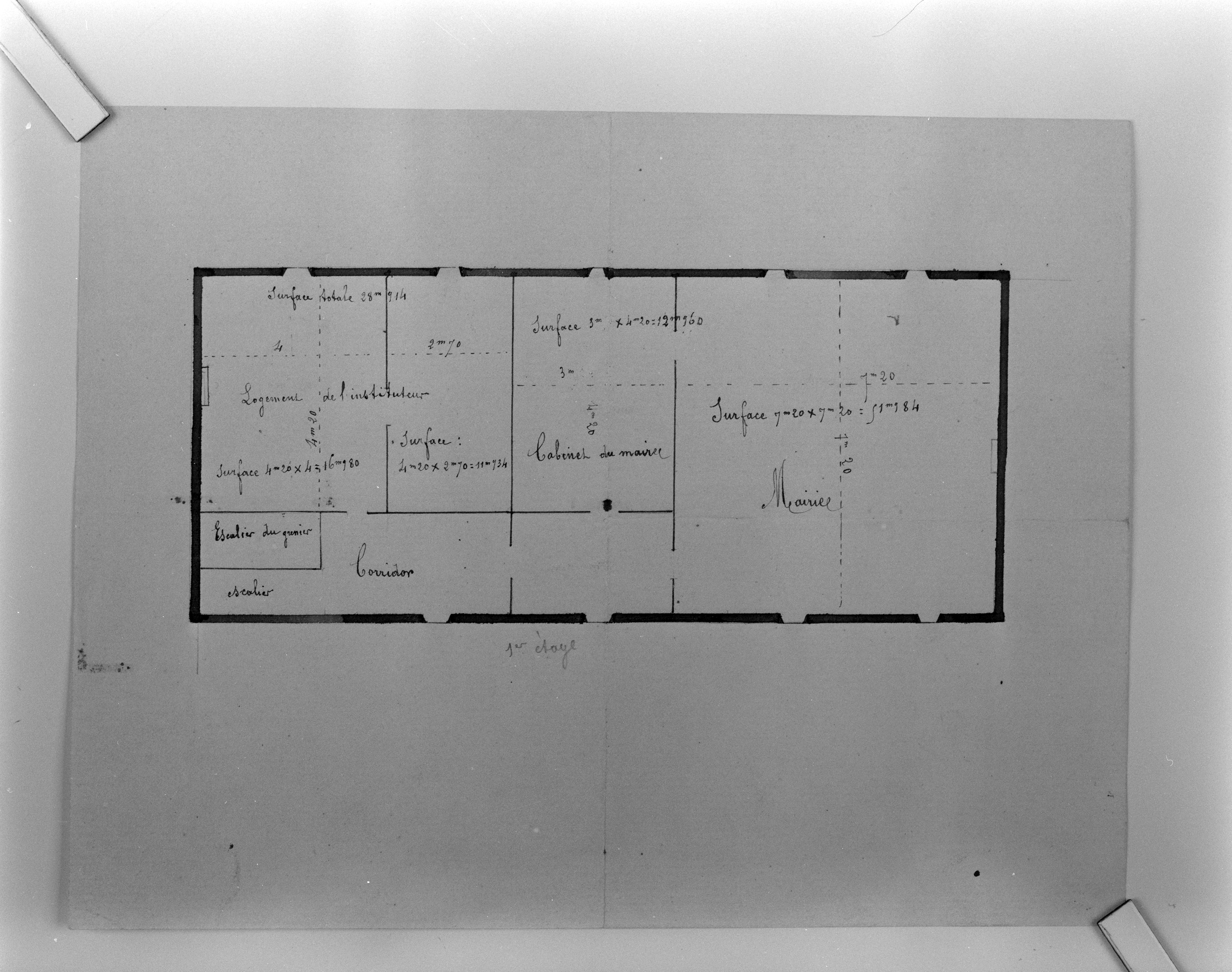 Ecole mixte de Guidel, petit plan sans légende du premier étage, 1910.Immatriculation