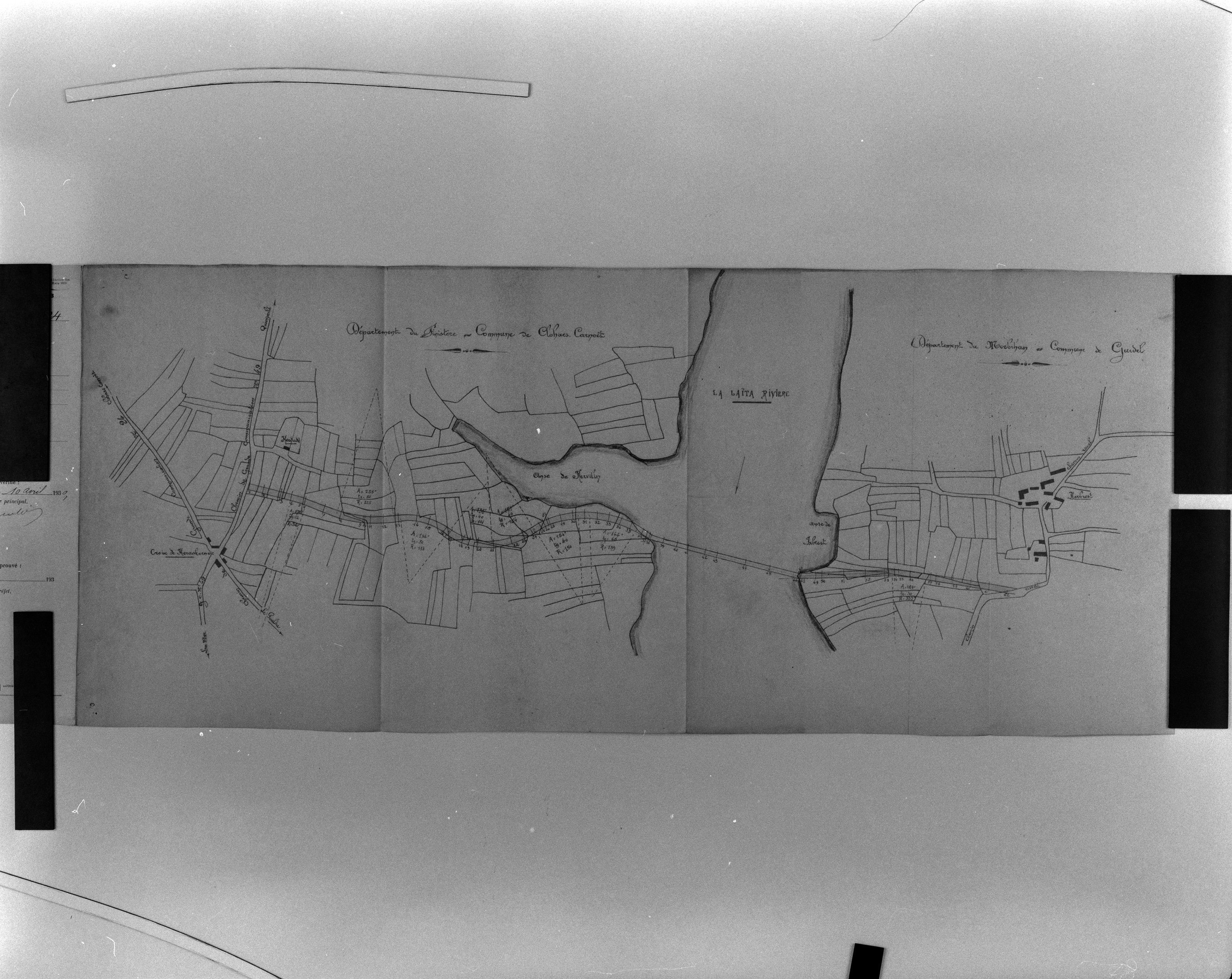 Projet de construction d'un pont sur La Laïta, plan des lieux, cadastre ancien 1818.Immatriculation
