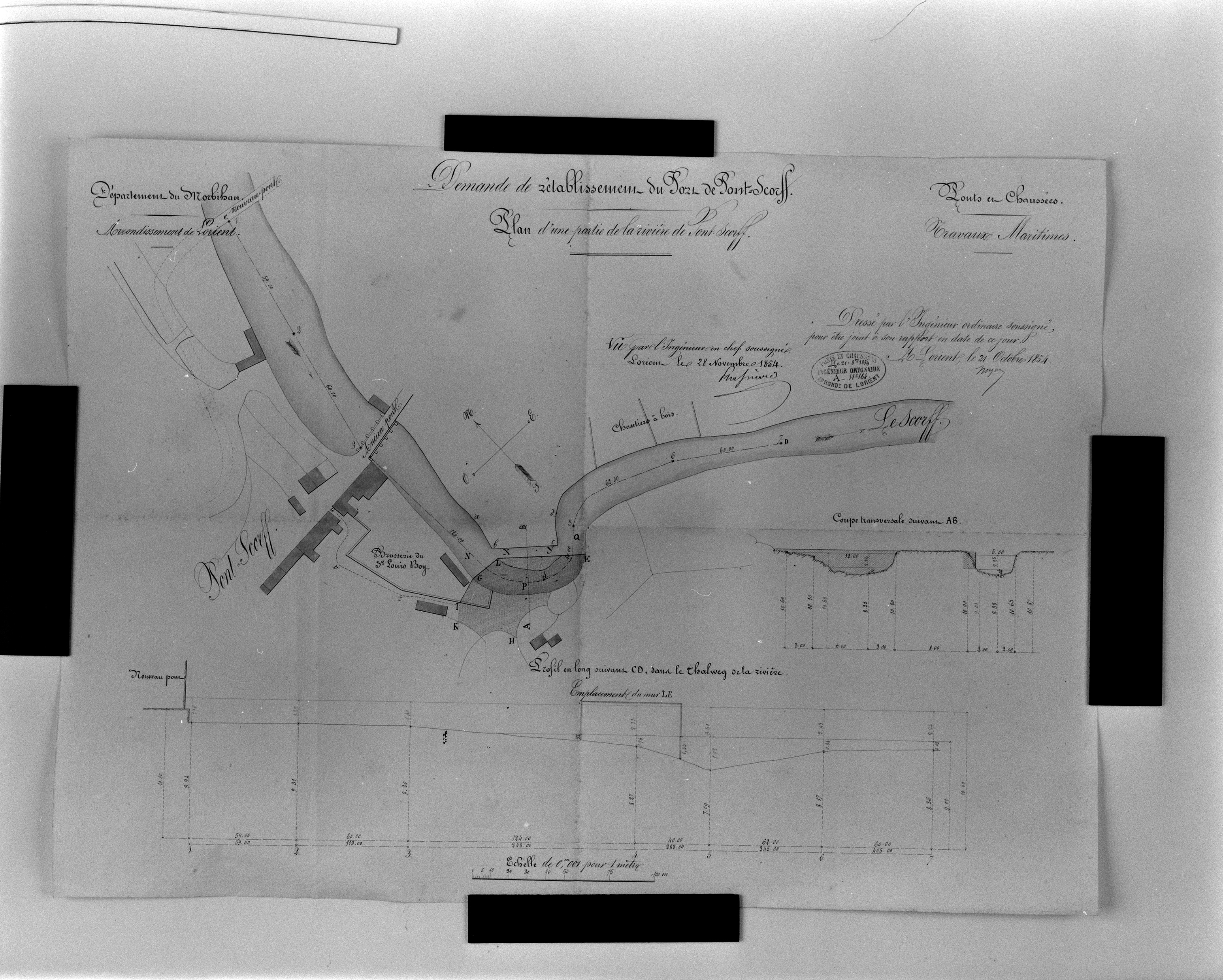 Plan d'une partie de la rivière, 1854, demande de rétablissement du port, vue générale.Immatriculation