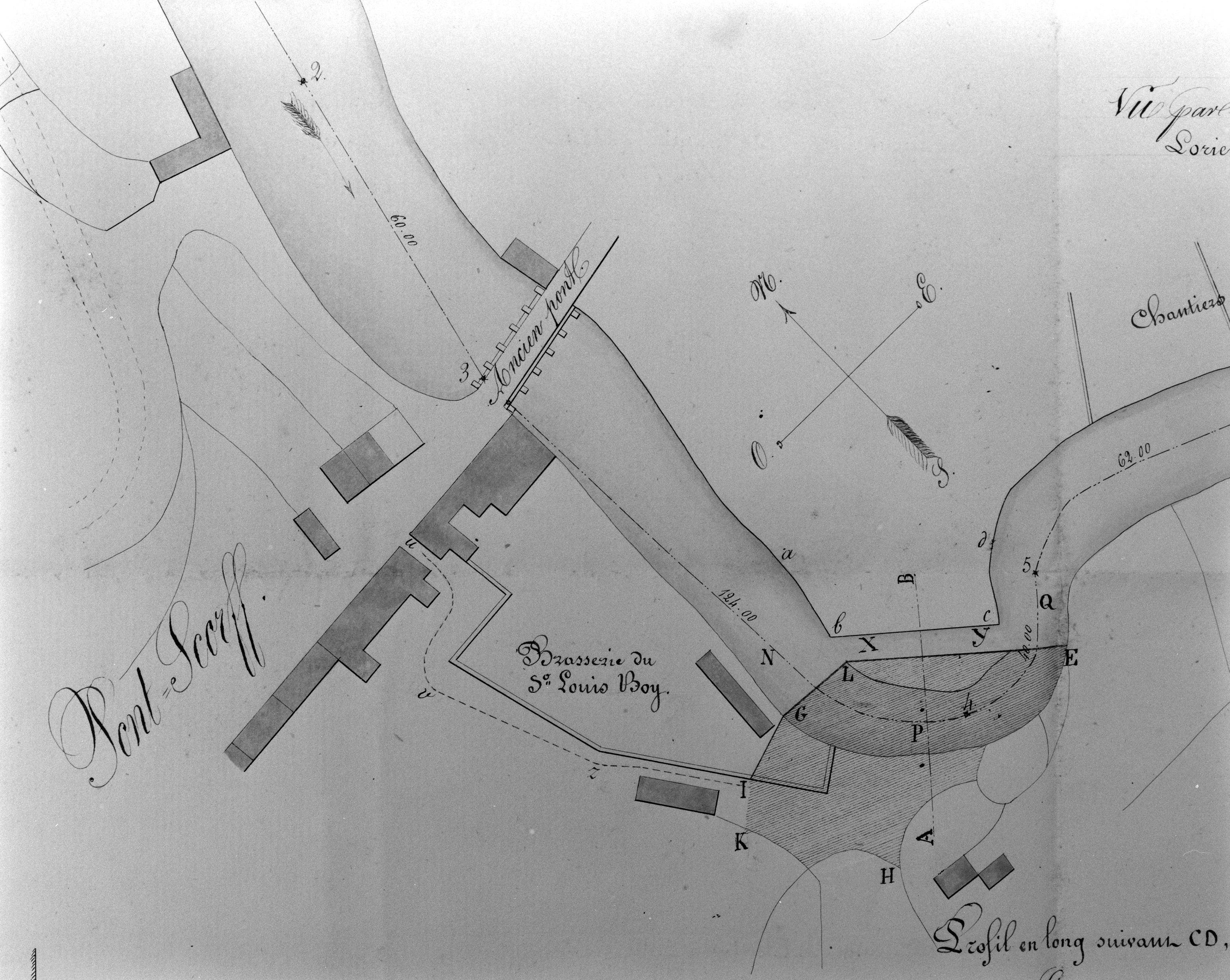 Plan d'une partie de la rivière, 1854, demande de rétablissement du port, détail. .Immatriculation