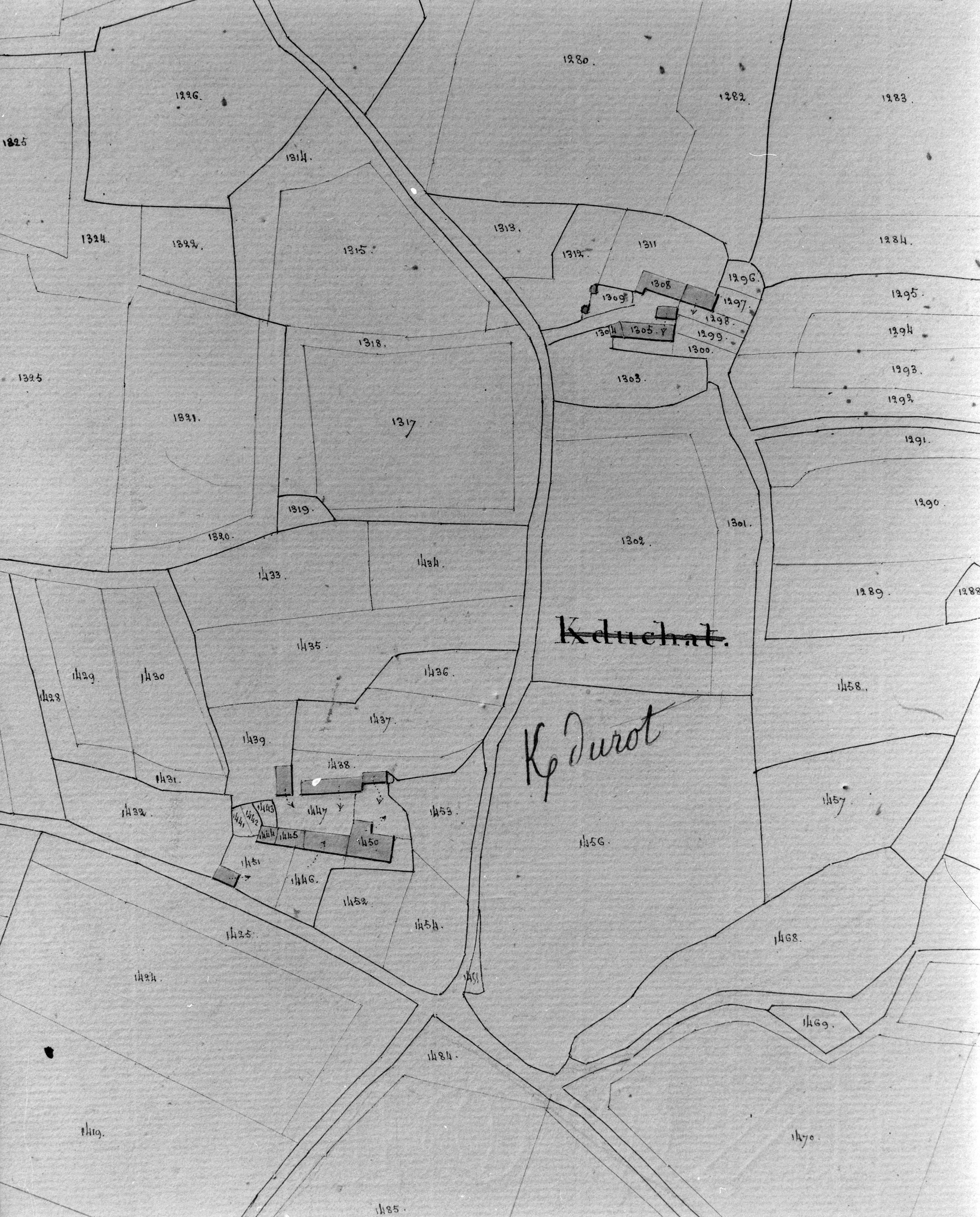 Cadastre ancien de 1818, extrait cadastral de l'écart, section E.Immatriculation