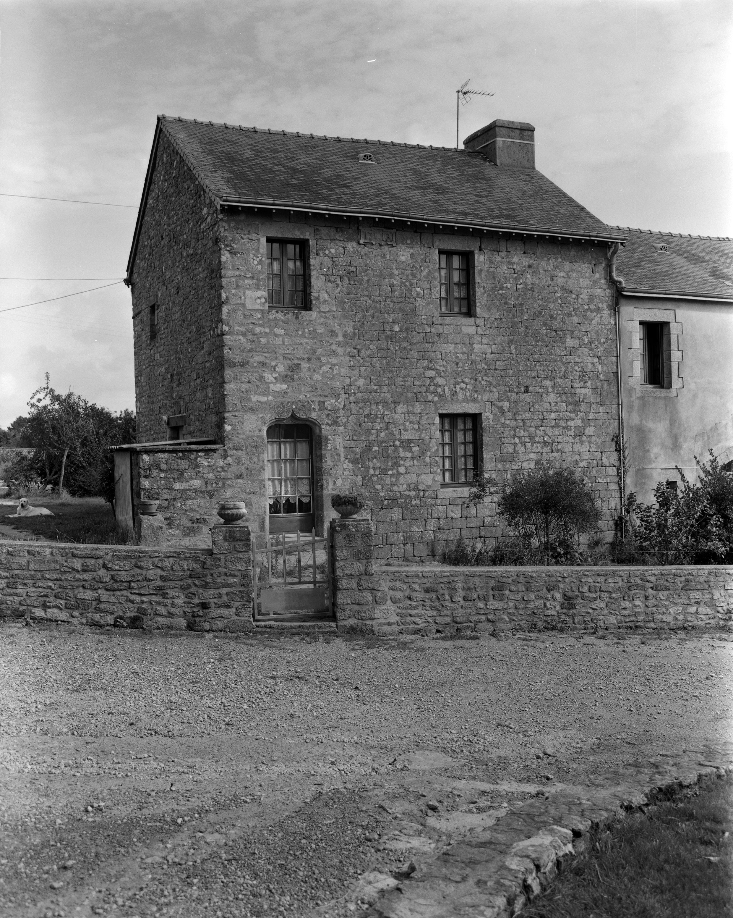 Kermorvan, maison, logis secondaire datée 1713, vue générale sud-ouest : état en 1976.Immatriculation