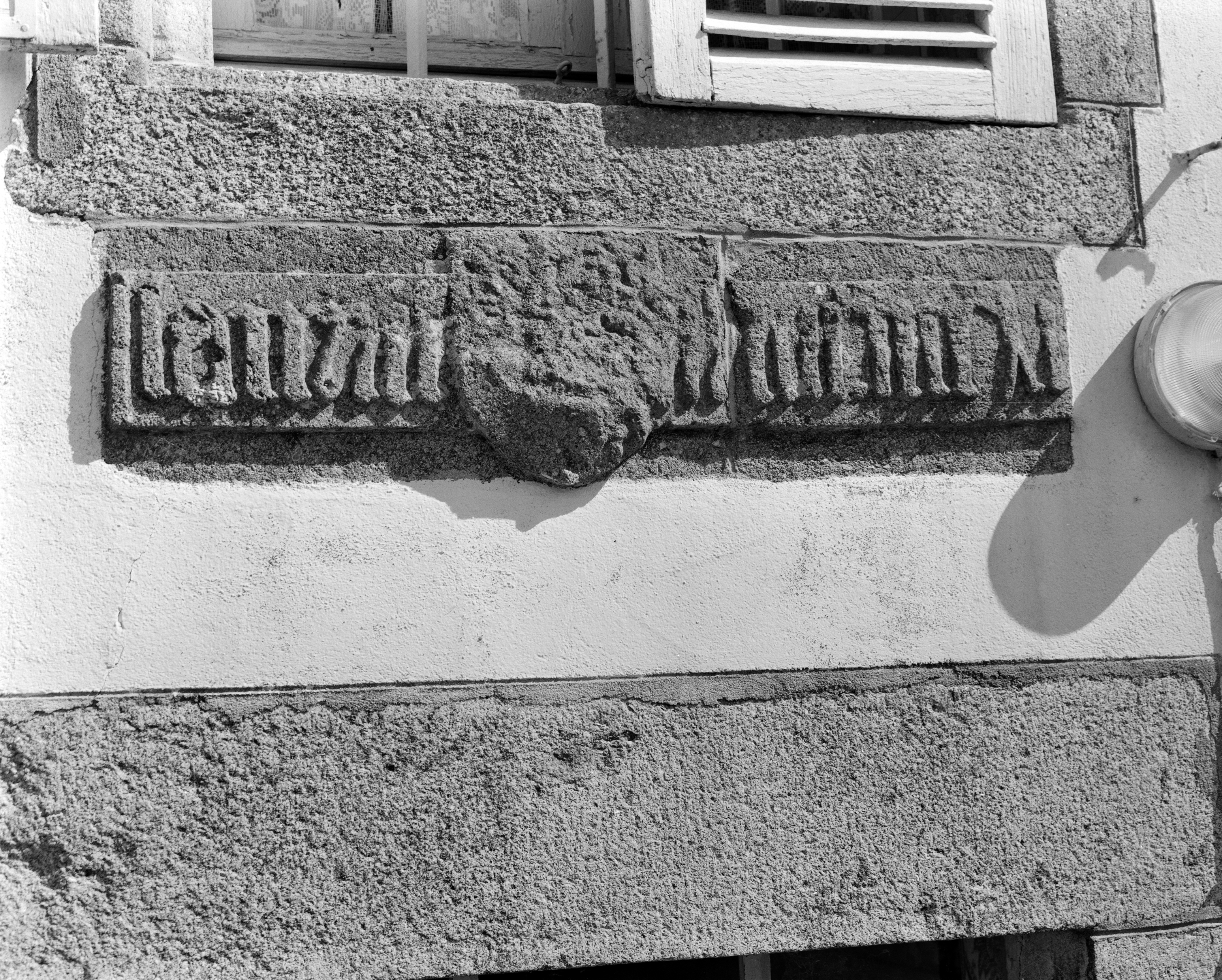 Inscription lettres gothiques linteau, mur sud.Immatriculation