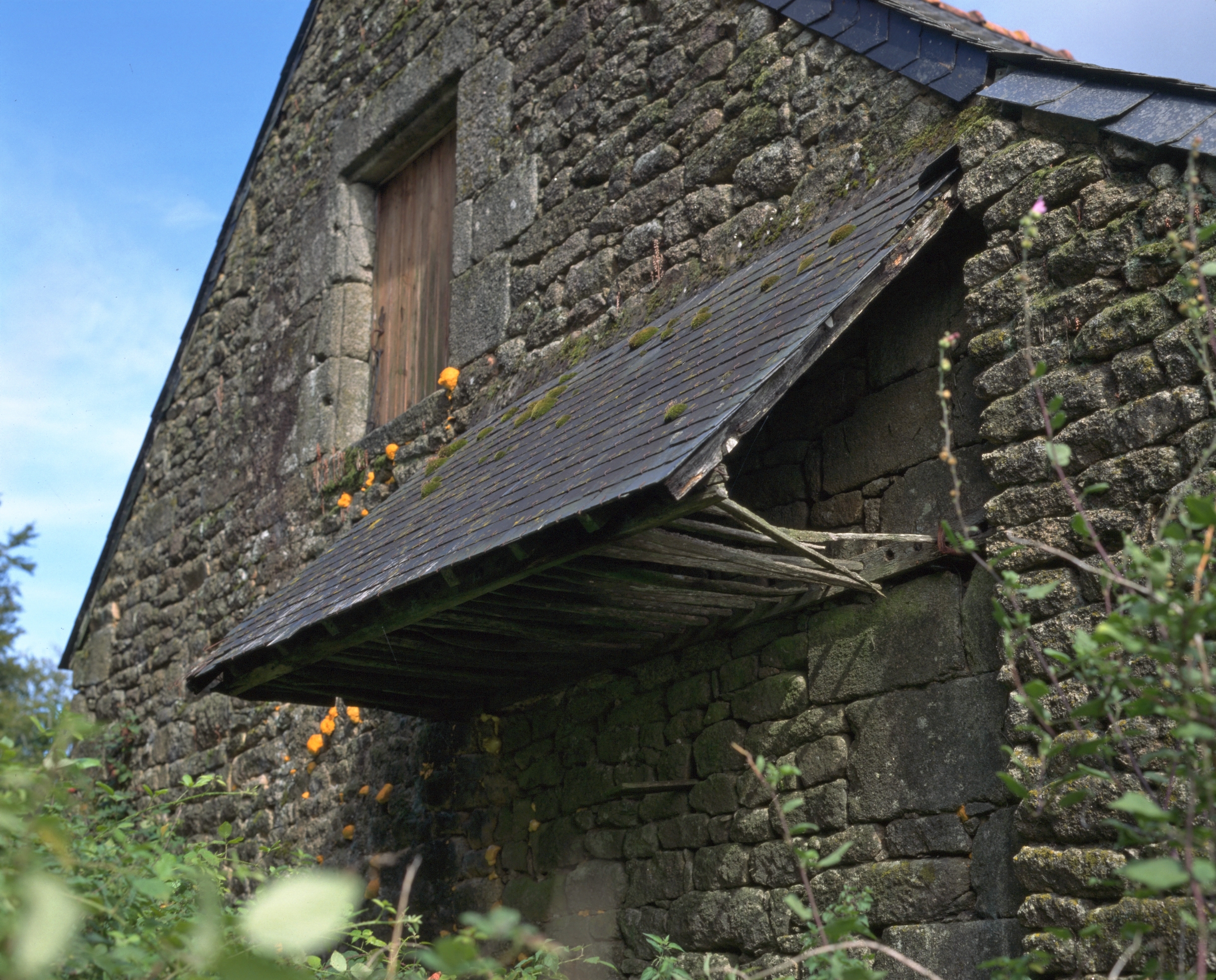 Kerhenry, maison datée 1861, pignon, détail du pigeonnier suspendu.Immatriculation