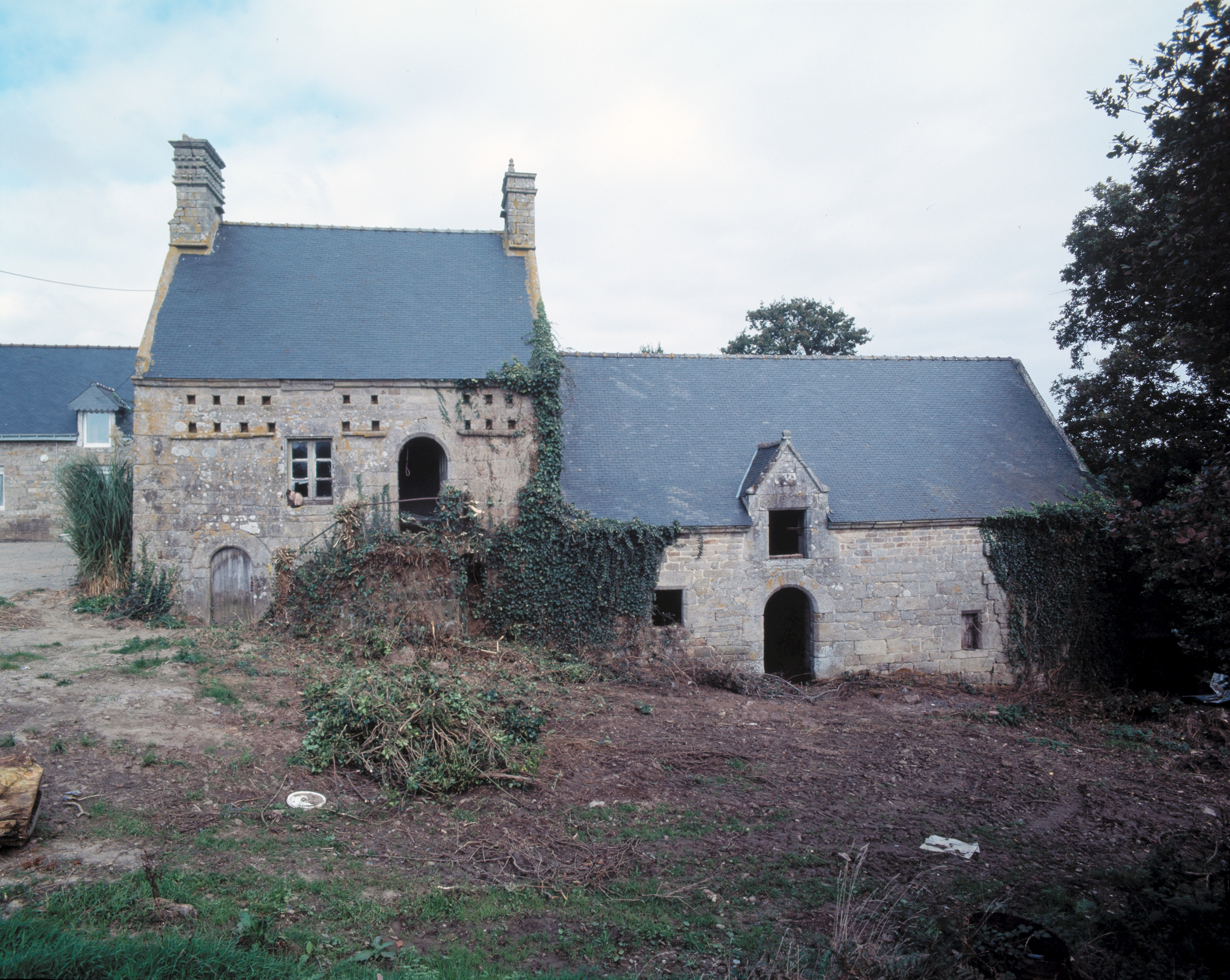 Elévation sud du logis à étage et du logis-étable en alignement, état en 1999.Immatriculation