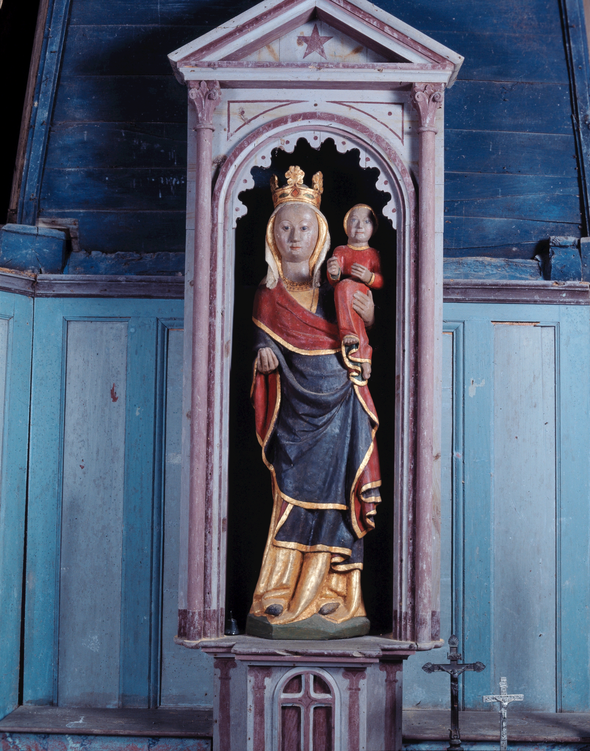 Statue (grandeur nature) : Vierge à l'Enfant, chapelle de la Vraie Croix (Locmalo),