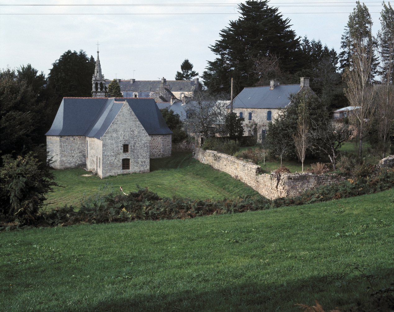 Ensemble chapelle, presbytère et jardin clos, vue est.Immatriculation