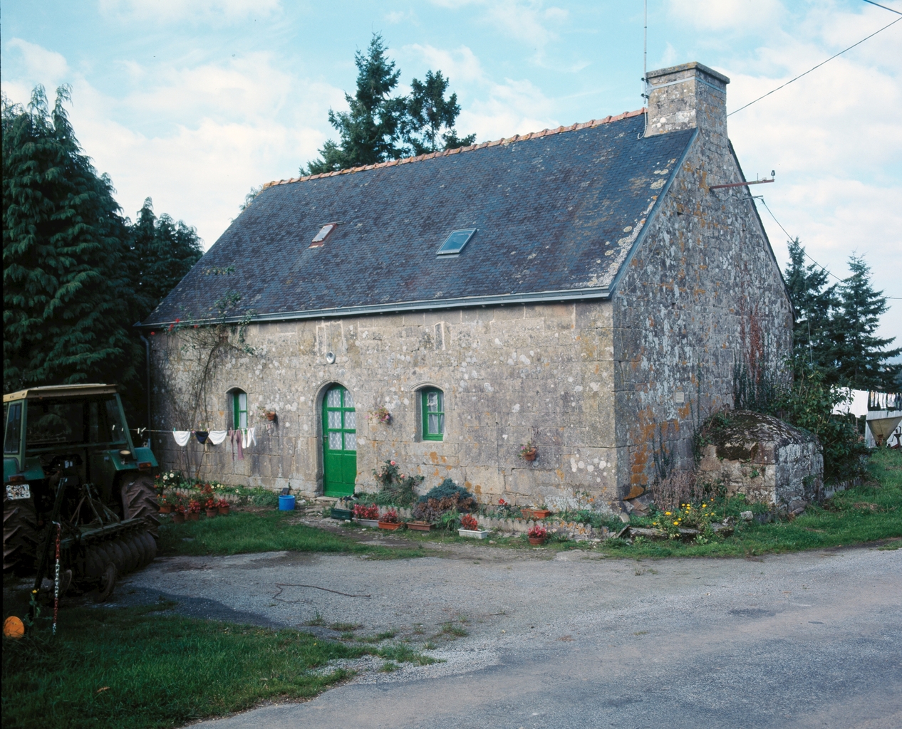 Kerquer, maison n°1, 1790, élévation sud avec four à cendres visible en pignon.Immatriculation