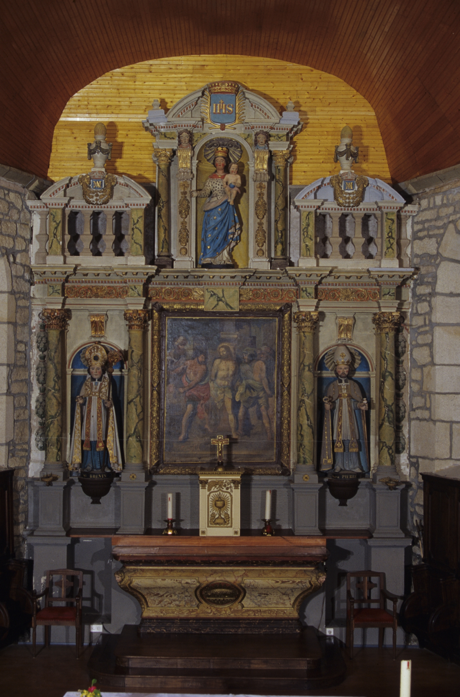 Autel, retable, tabernacle (maître-autel, retable architecturé), église paroissiale Saint-Brévin (Berné),