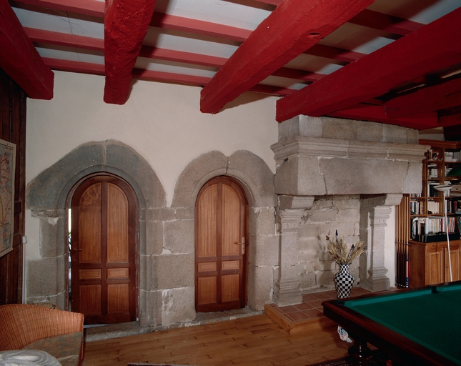 Etage, salle est, cheminée sur le goutterau nord et portes communiquant avec l'appentis postérieur (2000)Immatriculation