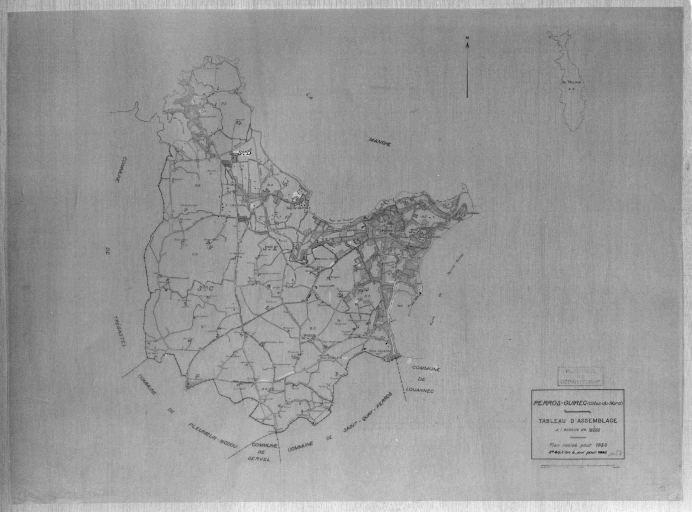 Révision du cadastre de Perros-Guirec, tableau d'assemblage, encre sur calque, 2e édition de 1962, 1/10000e.Immatriculation