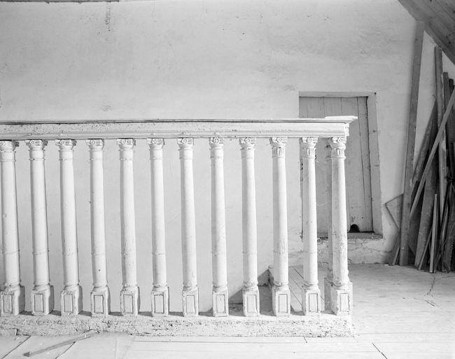 Vue générale de la balustrade au sommet de l'escalier.Immatriculation