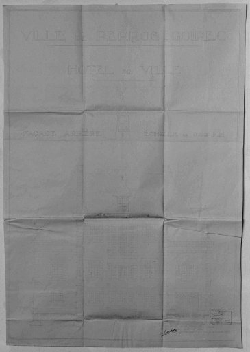 Hôtel de ville, Perros-Guirrec, façade arrière, projet réalisé, tirage sur papier par Jean Le Corre, architecte, 25 novembre 1932.Immatriculation