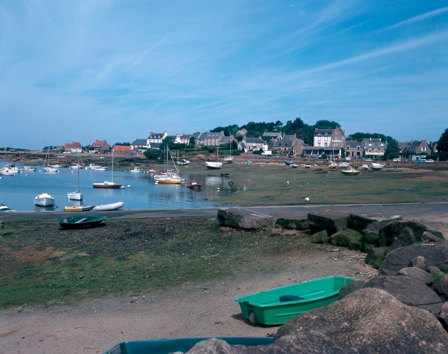 Vue d'ensemble du port de Ploumanac'h depuis la chaussée du moulin à merImmatriculation