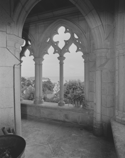 Vue des baies avec réseau depuis la galerie, avec vue sur la merImmatriculation