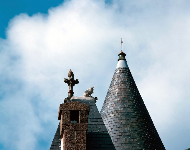 Détail d'un épi de faîtage.Immatriculation