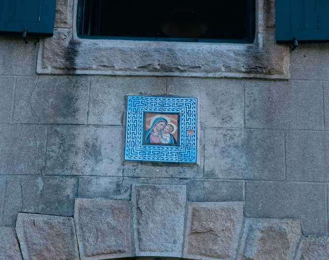 Carreaux de céramique : détail du décor porté sur la façade antérieure (Vierge à l'enfant)Immatriculation